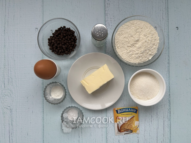 Соберите все необходимые ингредиенты для приготовления печенья «Крамбл кукис» (Crumbl Cookies) по списку.