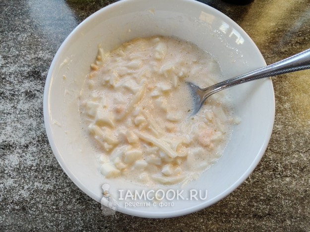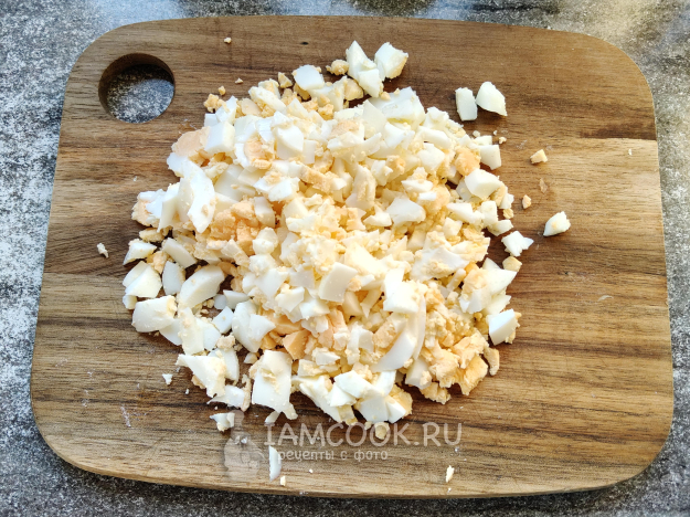 Чтобы приготовить яичные оладьи (с вареным яйцом), надо сварить яйца в течение 12 минут, остудить в холодной воде.