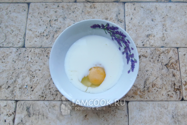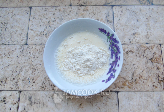 Взбейте яйцо с молоком и солью. Насыпьте муку.