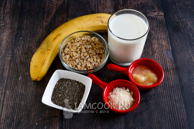 Соберите продукты для приготовления овсяной каши с семенами чиа на завтрак.