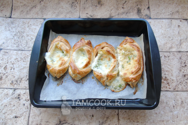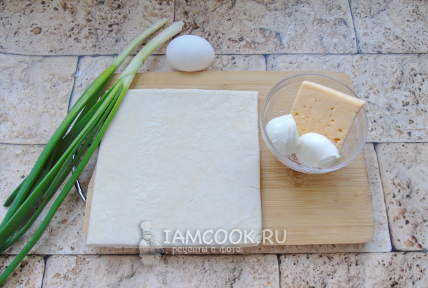 Соберите ингредиенты для приготовления лодочек из слоеного теста с сыром.