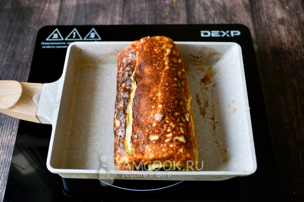 Как только нижняя сторона начнет схватываться, аккуратно лопаткой начните сворачивать в рулет.