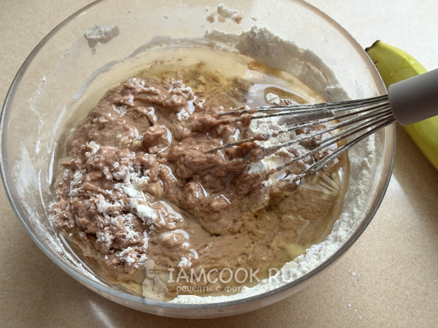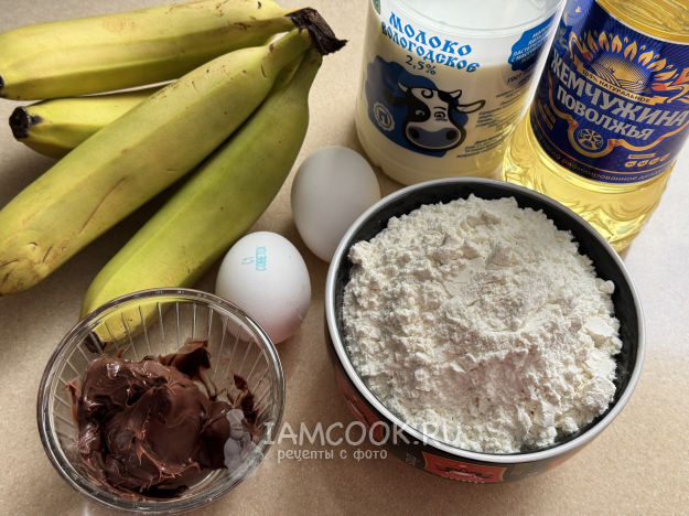 Собрать продукты для приготовления бананового кекса на сковороде.