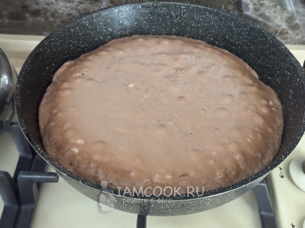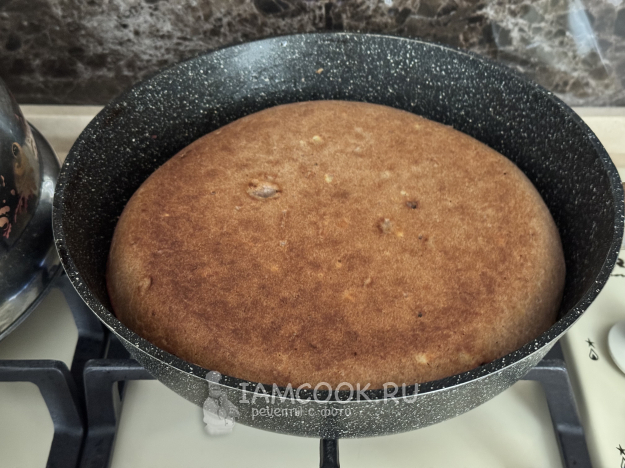 Выпекать банановый кекс на сковороде примерно 15 минут, дно и края уже пропекутся.