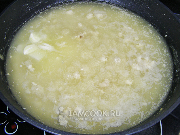Когда шкварки, лук и чеснок станут золотисто-коричневого цвета, снимаем казан с огня и оставляем слегка остыть.