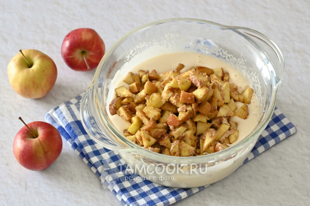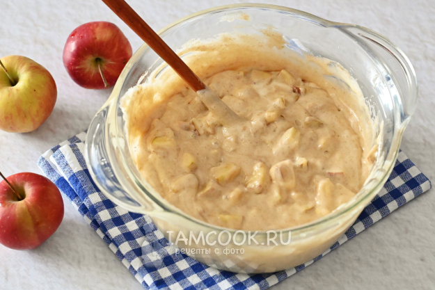 Аккуратно ложкой вмешайте в тесто яблочную начинку.