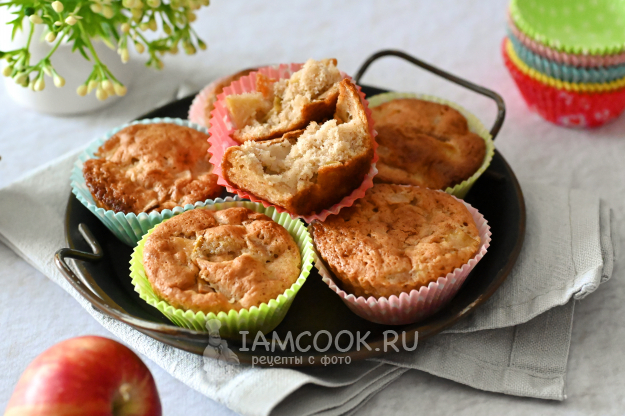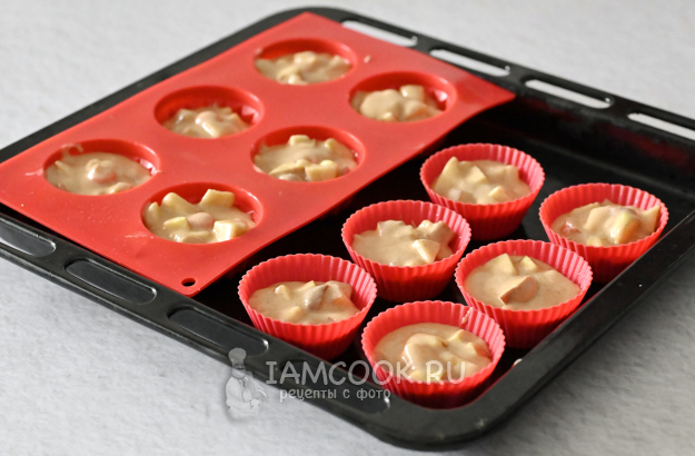 Формочки для кексов при необходимости смажьте маслом и разложите в них тесто с яблоками на 2/3 высоты.
