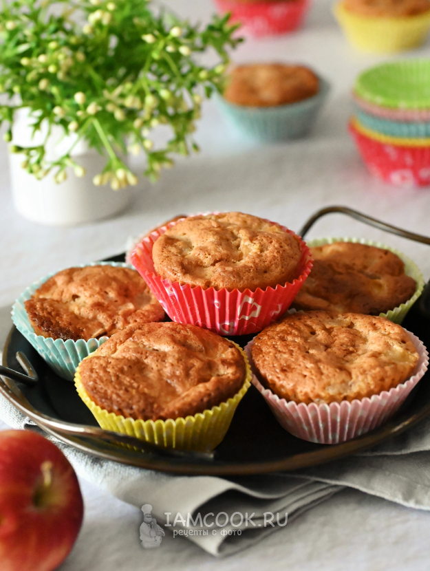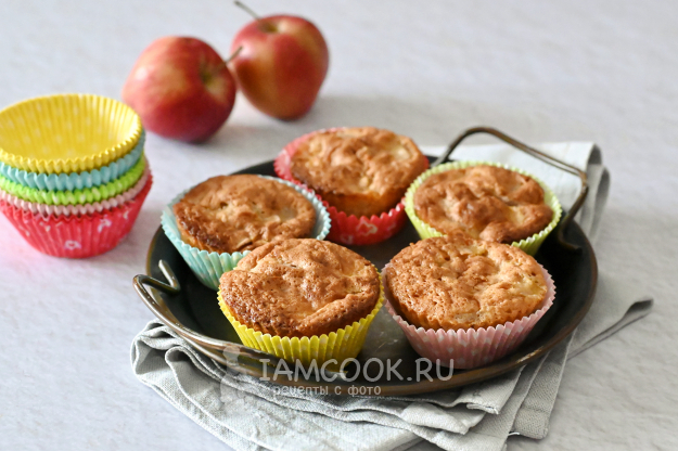 Соберите все продукты для приготовления шарлотки с яблоками в формочках для кексов.