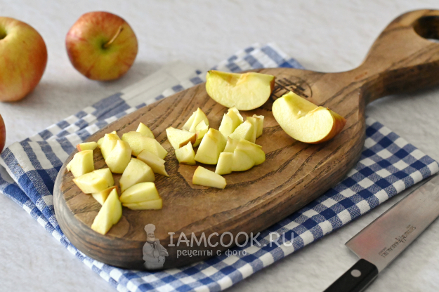 Яблоки вымойте, удалите сердцевину и нарежьте на небольшие кубики.