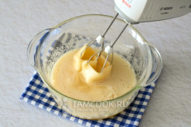 Миксером взбейте всё до пышной пены, примерно 1-2 минуты.