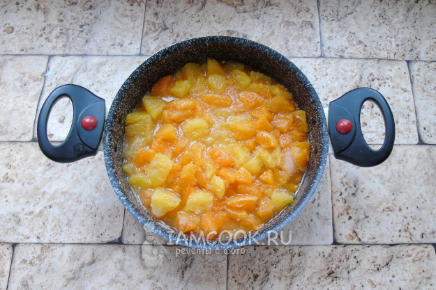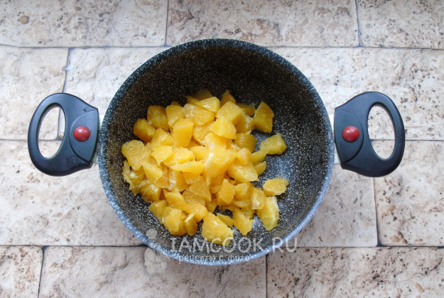 Выложите апельсины в кастрюлю с антипригарным покрытием.