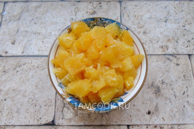 Точно так же поступите с апельсинами. Нарежьте дольками.