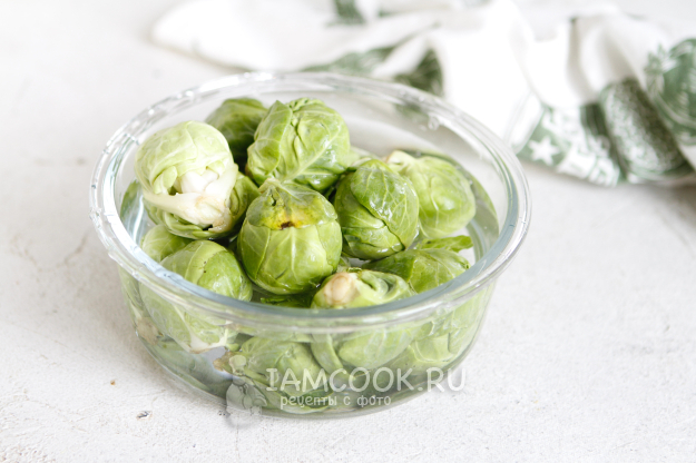 Брюссельскую капусту хорошо промойте. При необходимости снимите верхние листочки.