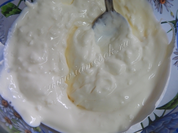 Соединяем чеснок с майонезом, жирность майонеза не влияет на вкусовые характеристики блюда. Перемешиваем, чтобы чеснок равномерно распределился по майонезной массе.