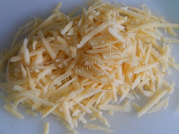 Натираем твердый сыр. Предпочтение отдаем тому сорту, который хорошо плавится.