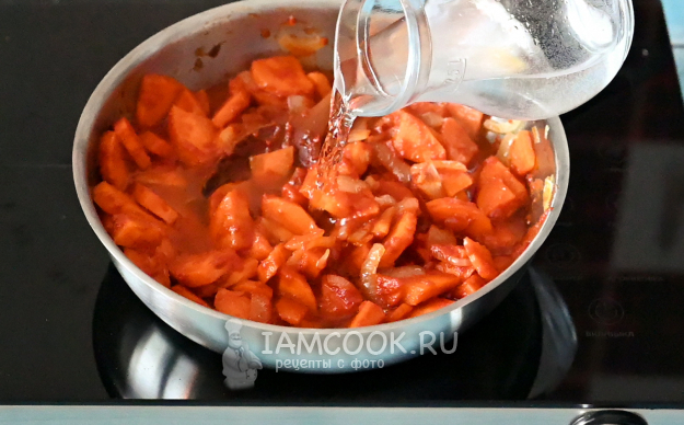 Разведите всё водой до желаемой консистенции (учитывайте, что при тушении часть воды выкипит).