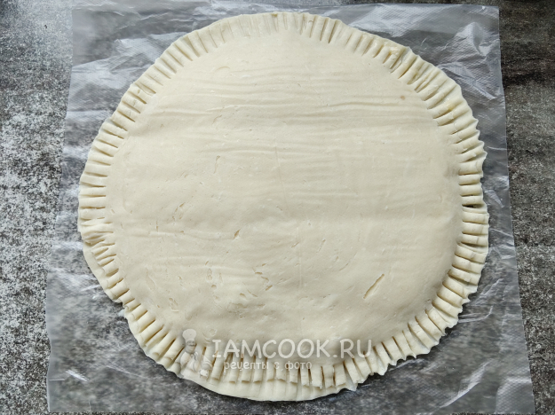 Лепешку достать из морозилки, снять пленку, распределить начинку.