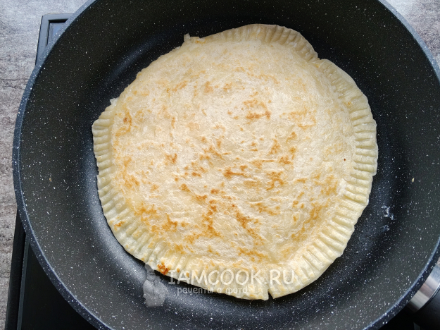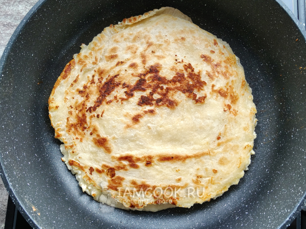 Переложить лепешку на сухую сковороду.