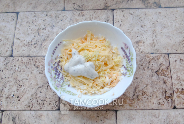 Добавьте натертый на терке сыр и измельченный любым доступным способом чеснок.