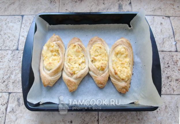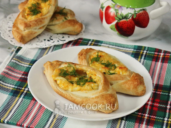Лодочки из слоеного теста с яйцом готовы.