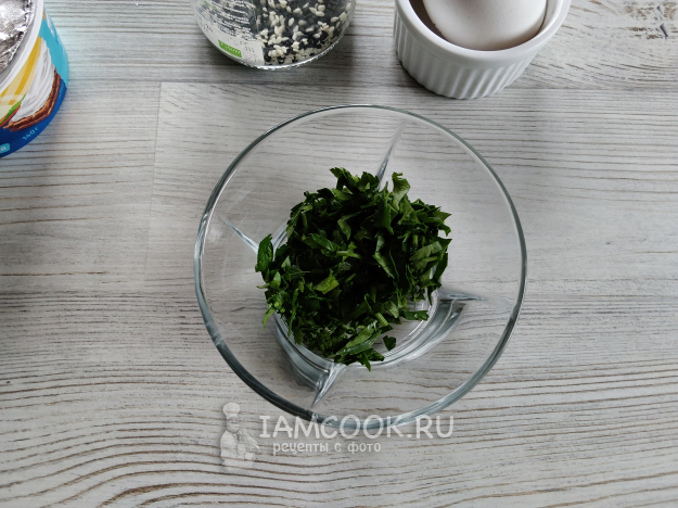 Измельчить петрушку и чеснок.