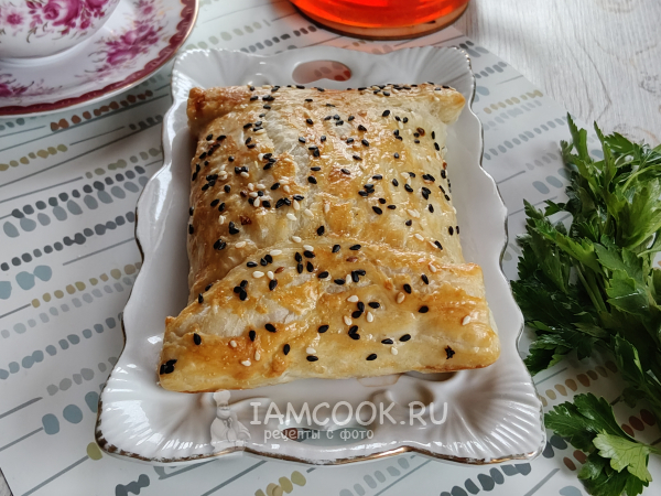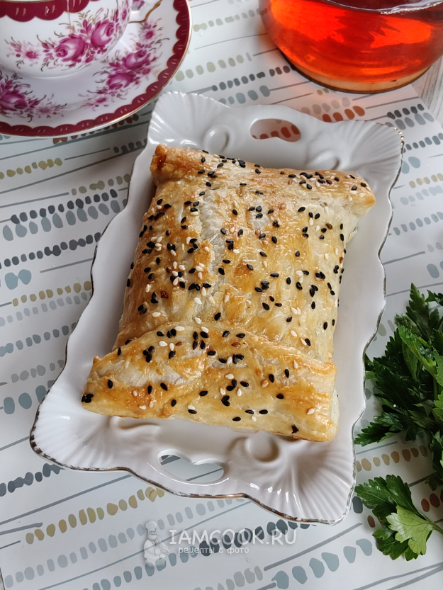 Смазать конвертик яйцом, посыпать кунжутом.