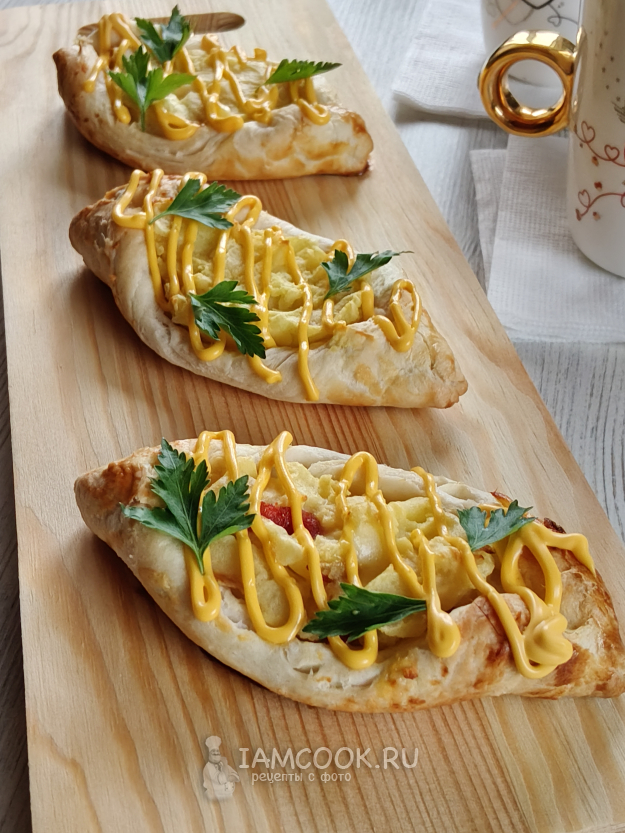 Лодочки из слоеного теста с картошкой готовы.