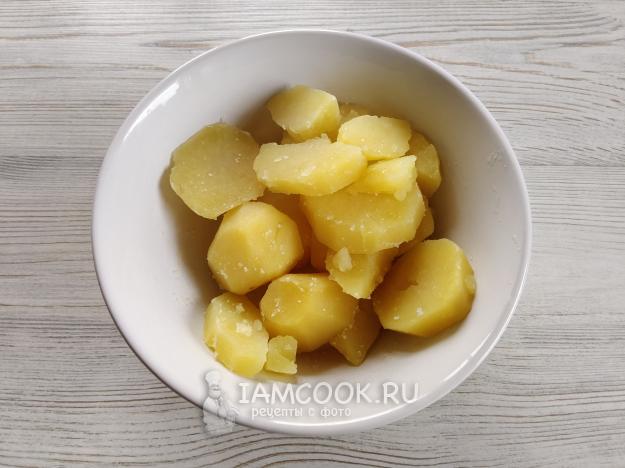 Картофель нарезать, залить водой, подсолить. Отварить до готовности.