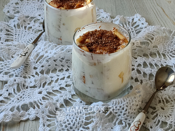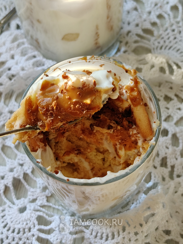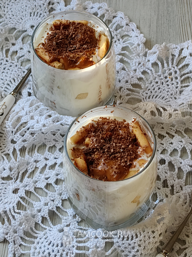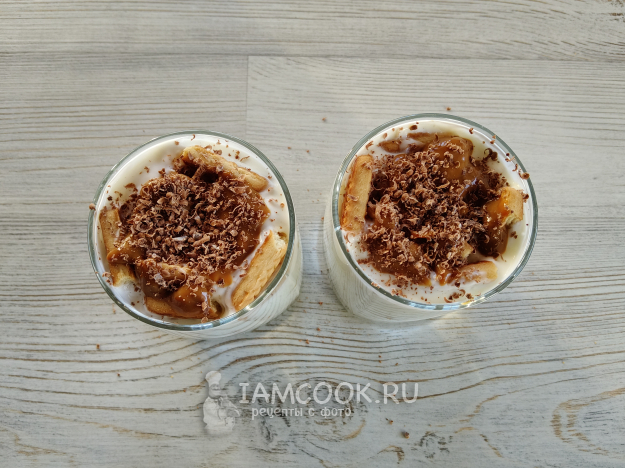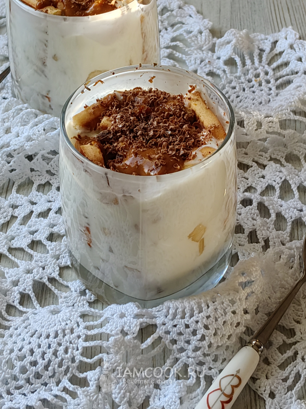Полить десерт карамелью, я еще посыпала шоколадом.
