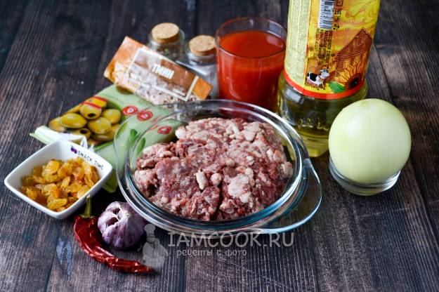 Соберите продукты для приготовления Пикадильо из говяжьего фарша.