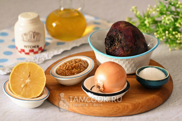 Соберите все необходимые продукты для приготовления салата из свеклы с дижонской горчицей.