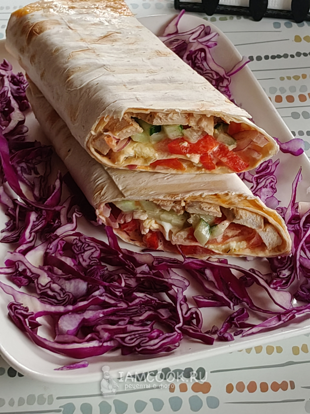 Шаурма с яйцом и мясом готова.