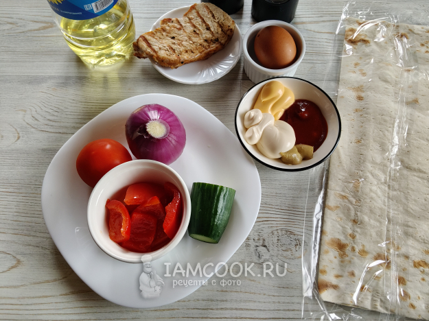 Шаурму с яйцом и мясом я готовила из этих ингредиентов.
