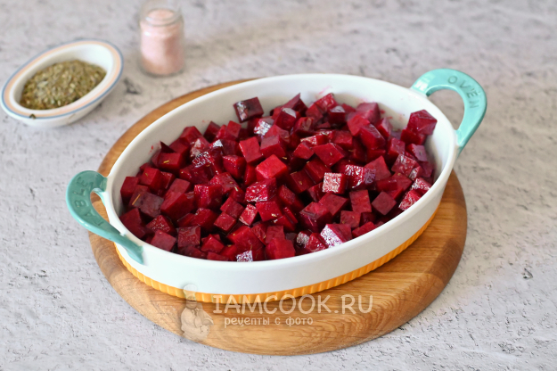 Ещё очень важно не выкладывать свеклу в форму толстым слоем, чтобы она быстрее пропеклась.