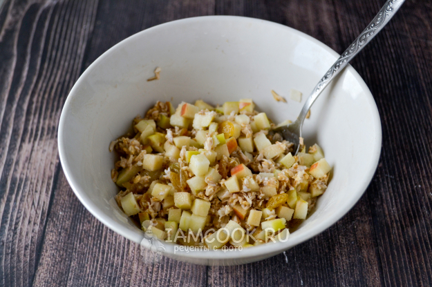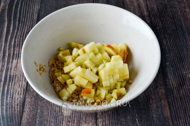 Яблоко вымойте и нарежьте мелким кубиком или натрите на крупной терке.