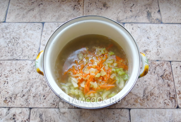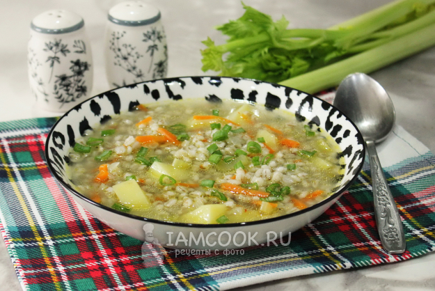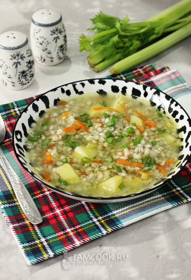 Ароматный, сытный и вкусный суп с сельдереем и перловкой готов.