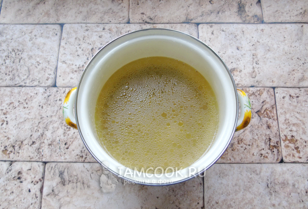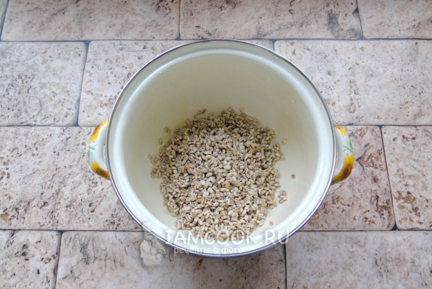 Перловку тщательно помойте, залейте холодной, кипяченой водой и дайте постоять 5-6 часов, а лучше ночь. После еще раз промойте и выложите крупу в кастрюлю.