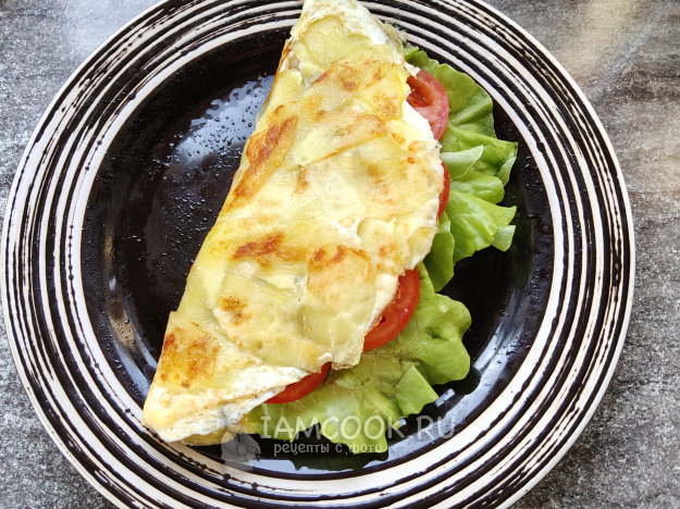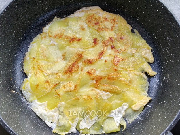 Сложить картофельно-яичную лепешку пополам.