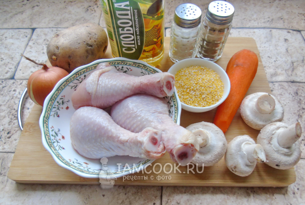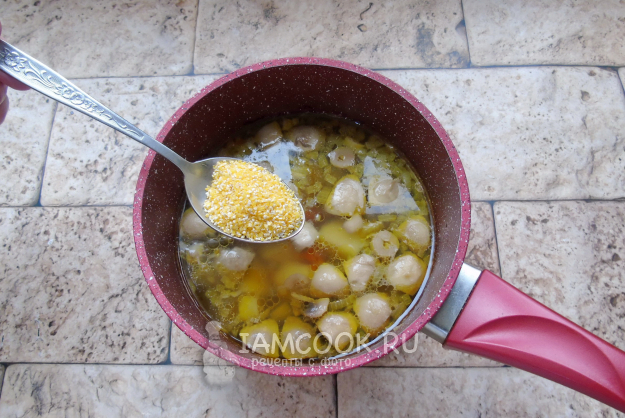Соберите ингредиенты для приготовления супа с полентой.