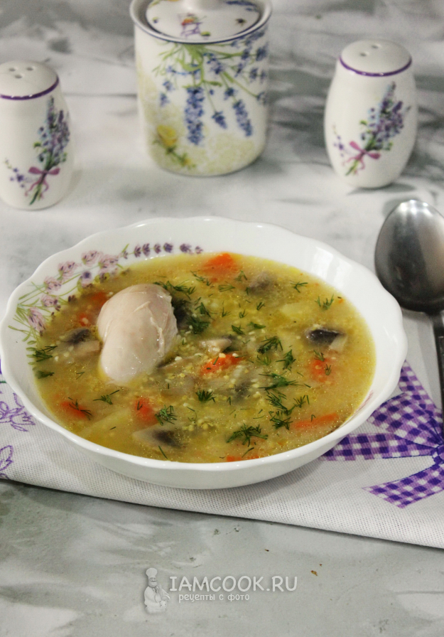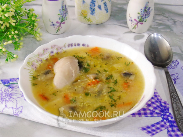 Нежный, ароматный, сытный суп с полентой готов. При подаче в тарелку выложите отварную курицу.