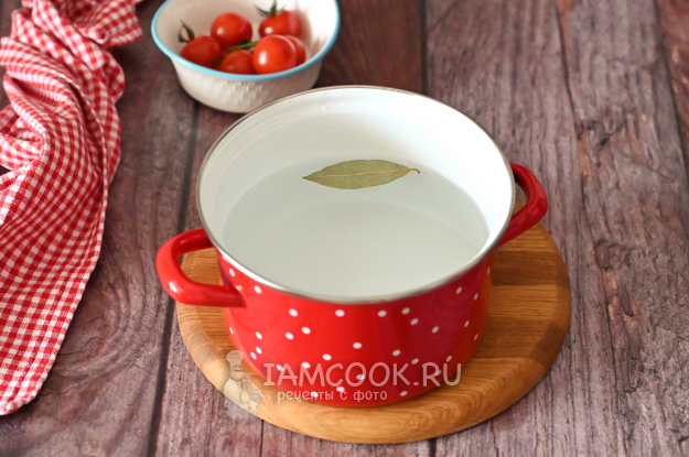 В кастрюлю налейте воду, добавьте немного соли и лавровый лист. Доведите воду до кипения.