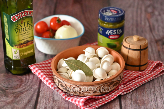 Соберите все необходимые продукты для приготовления пельменей с соусом песто.