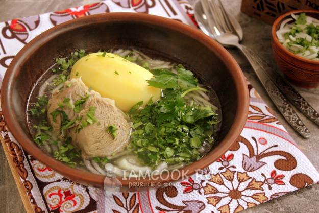 Колоритный сытный суп махан калмыцкой кухни хорош...