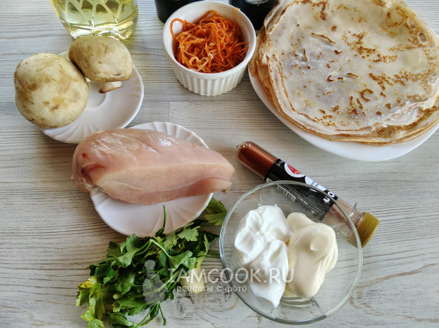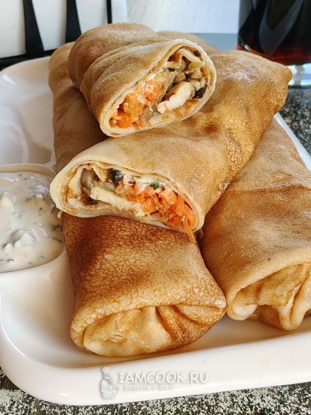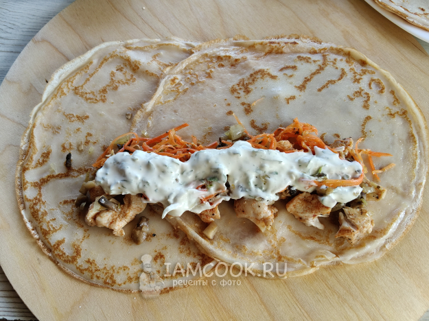 Для приготовления шаурмы из блинов испеките блины по своему любимому рецепту.