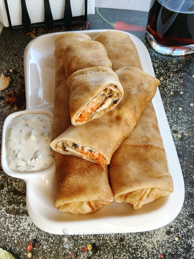 Шаурма из блинов готова, а точнее три, из этих ингредиентов.
