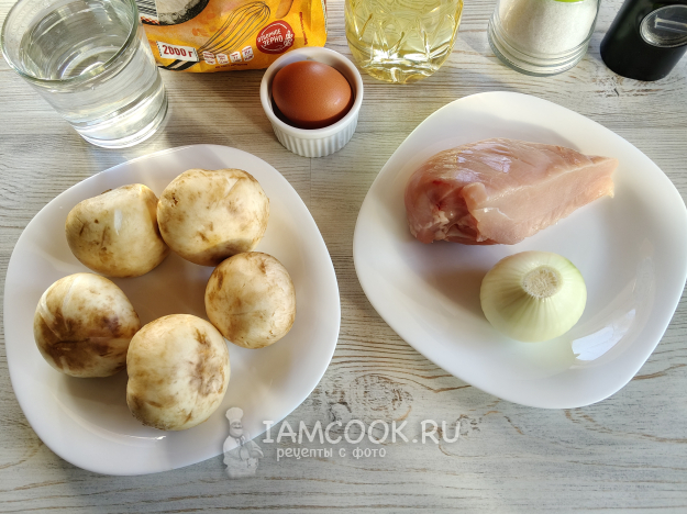 Пельмени с курицей и грибами приготовим из этих ингредиентов.