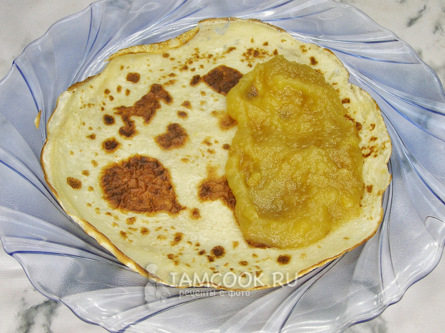 Обжаренные блинчики складываем в стопочку. Из данного количества теста у меня получилось 14 блинов диаметром 17 см. Фрисуэлос и в таком виде можно подать к столу, с любимыми сладостями, но я решила приготовить их с яблочным пюре.