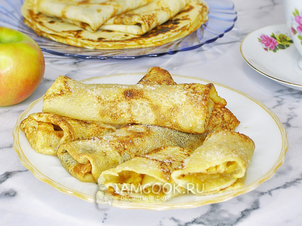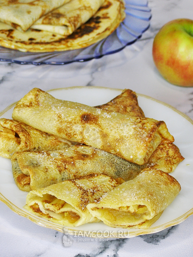 Испанские блинчики Фрисуэлос с яблочной начинкой готовы! Подаём их к столу в горячем виде. Приятного чаепития!