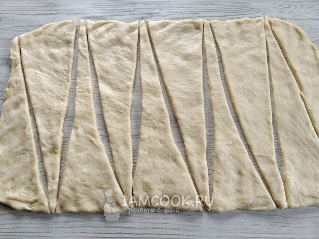 Тесто раскатать, нарезать треугольниками.