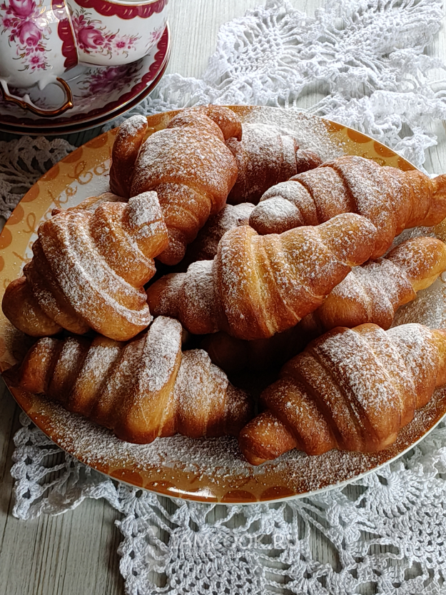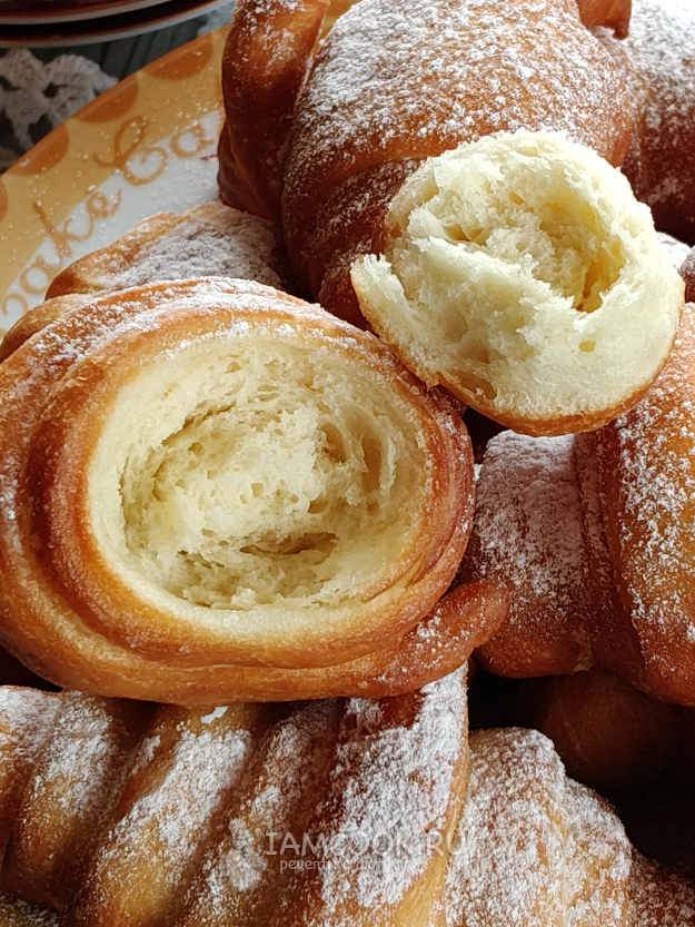 Пончики-круассаны посыпать сахарной пудрой, и можно угощаться.
